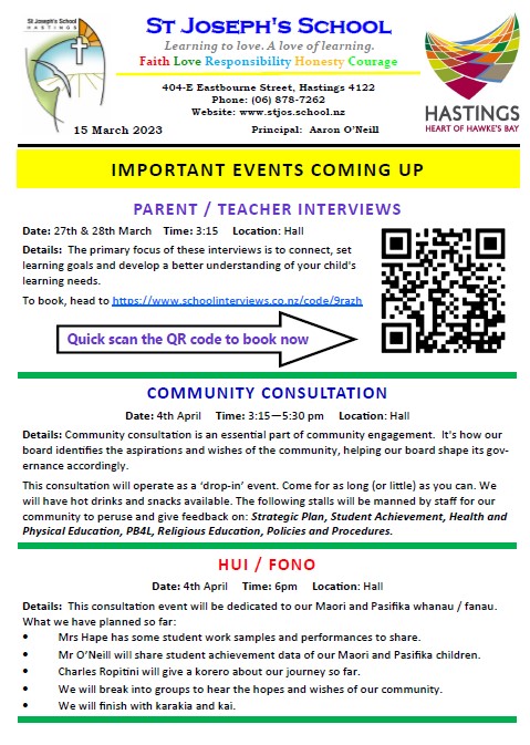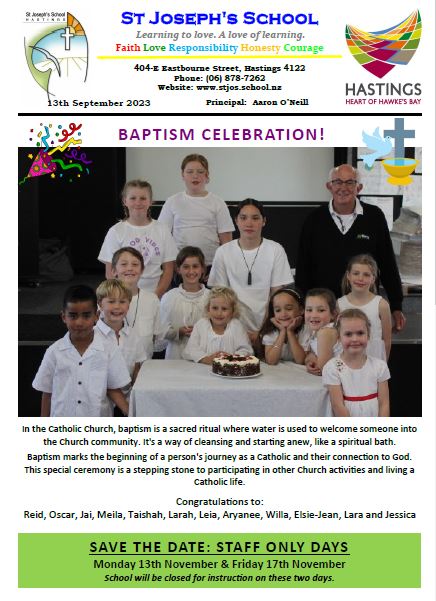 A school newsletter is published each fortnight, sent home on a Wednesday. The newsletter full of up-to-date information about things that have occurred or are happening at school and in the school community.